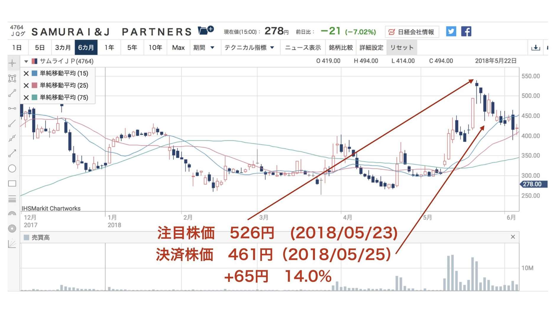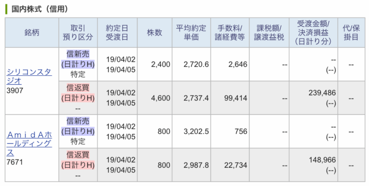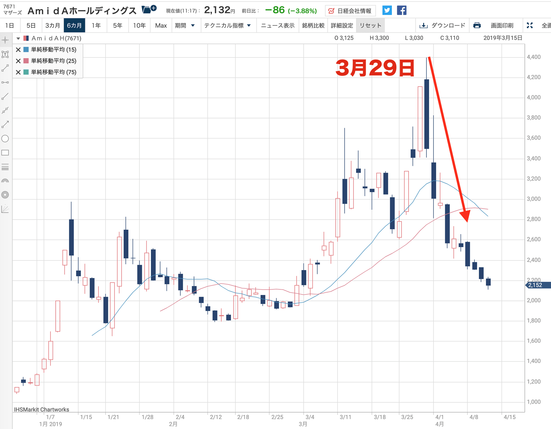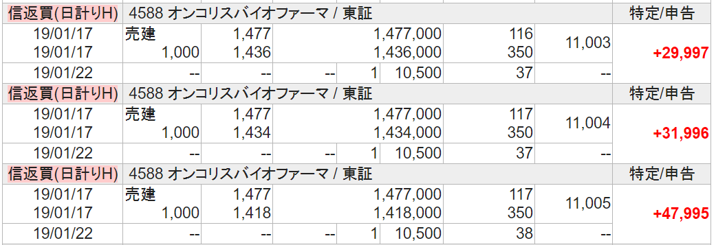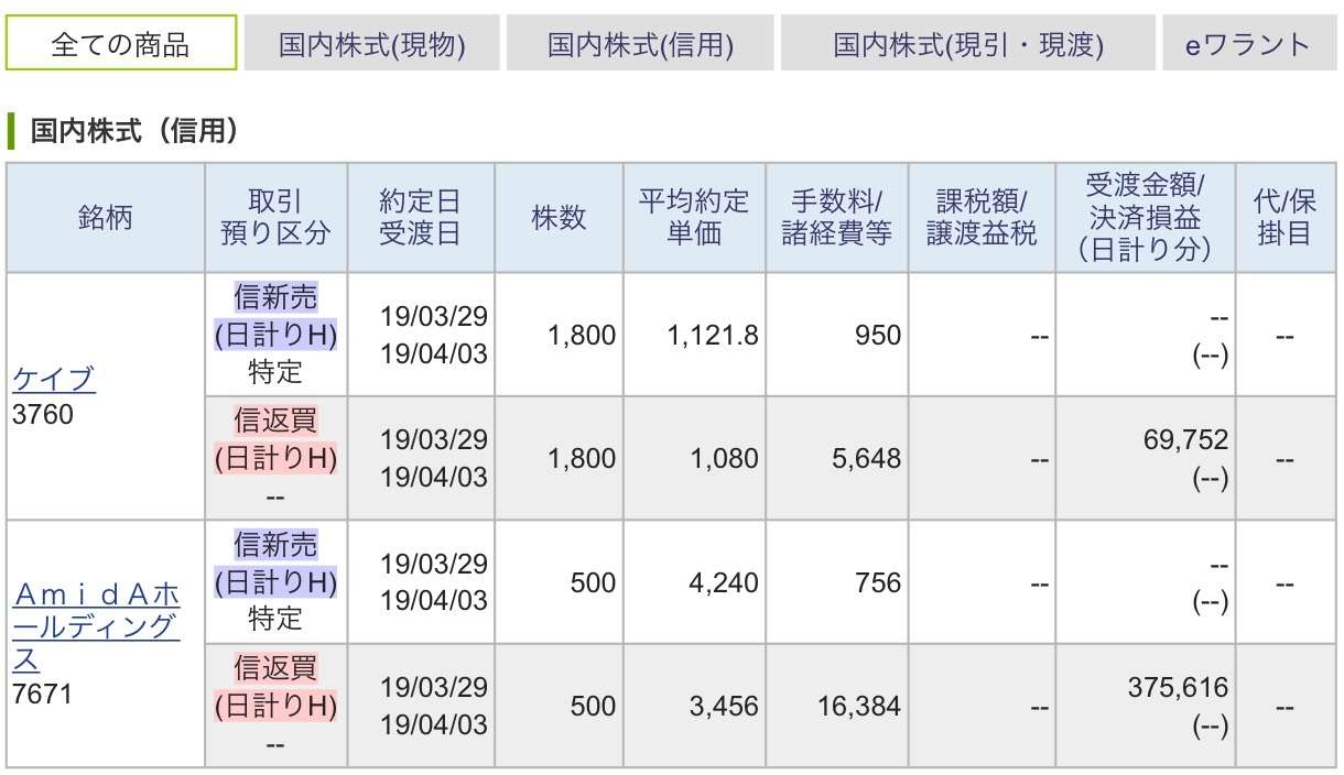 通信翌日、寄り付きで入れた後ストップ高になり、そこでママよ!とさらに売りいれ、その後ながーい上髭となり、翌日のギャプダウンも2パーあり、そこで44万円の利確。前日10分前に急落したのを思い出し、じっと待ち下がったので買い戻し、結果6万円の利益。結果、なんとか30万円の利益が出せましたが、疲れきりました。AmidAについては規制になりませんでしたが、落ちそうな予感がし、その後も仕掛けました。通信翌日の急落で15万円、その後20万円計35万円ほど取れました。